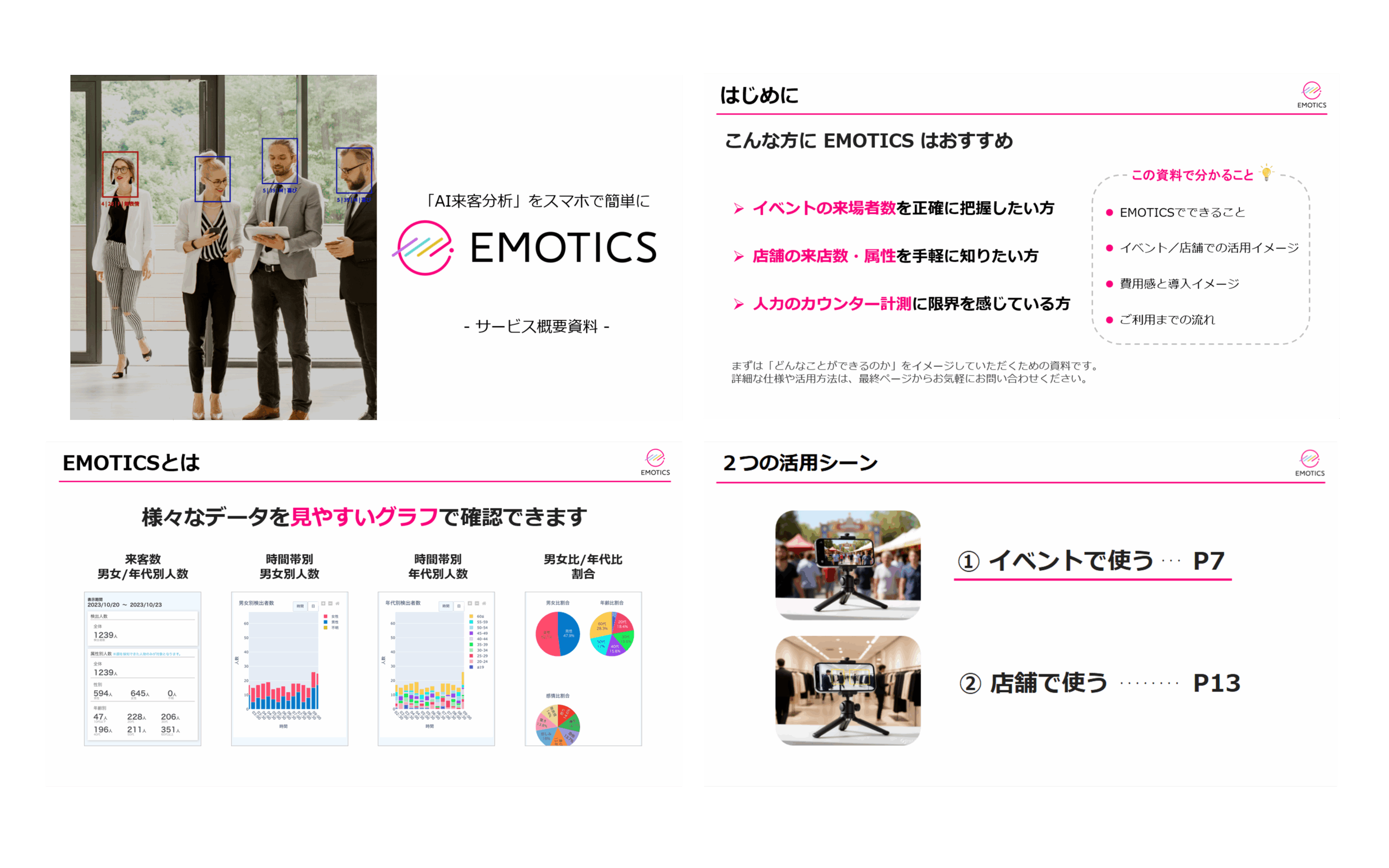 こちらはEMOTICSに関する資料一覧ページです。 すべて無料でダウンロードできますので、お気軽にご覧ください。