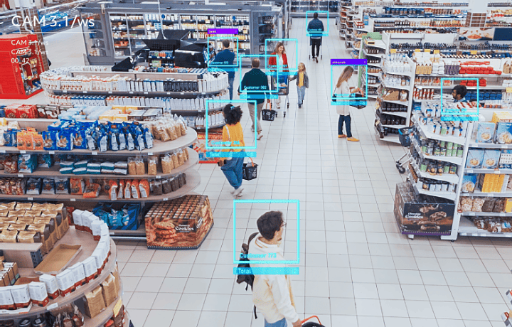 AIが人物を識別し、重複を除いた正確な来店数を計測します。