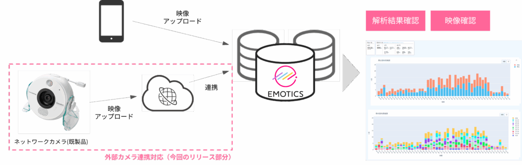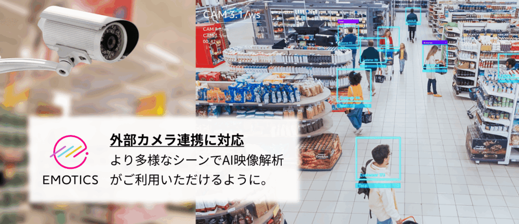 これにより、従来の「スマホだけで利用できる手軽さ」を保ちながら、常設カメラによる継続的な店舗DX・防犯用途にも対応でき、より多様なシーンで『EMOTICS』をご活用いただけるようになりました。